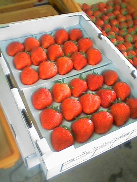 「アスカルビー」という品種を中心に栽培されています。「明日カルビー」ではないです、「飛鳥ルビー」です。奈良県でつくられた品種とのこと。甘さと酸っぱさを両立させた昔ながらのイチゴでした。うまい。