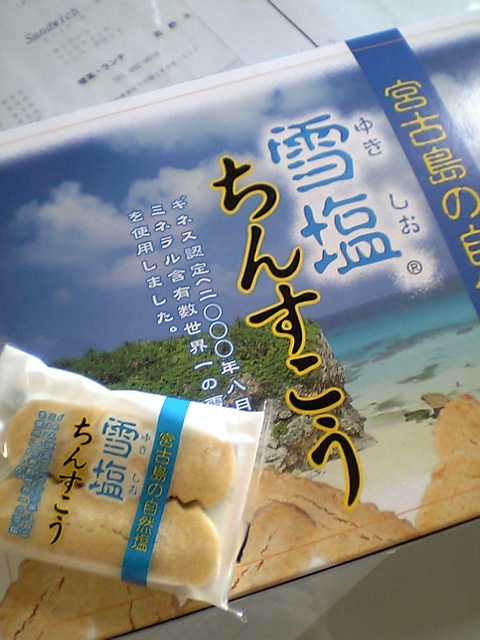 お土産の『雪塩ちんすこう』 沖縄の名物お菓子、ちんすこうの塩味です。