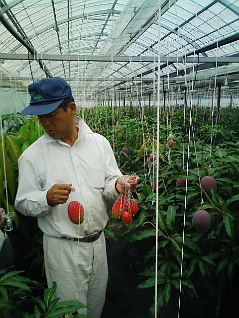 最後は宮崎特産となりつつあるマンゴーの生産者を訪問。栽培方法や収穫方法について話を聞きました。