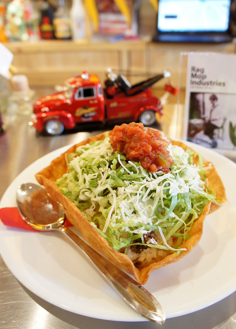 久しぶりにタコライス。緑色のタバスコをたっぷり掛けて頂きます。