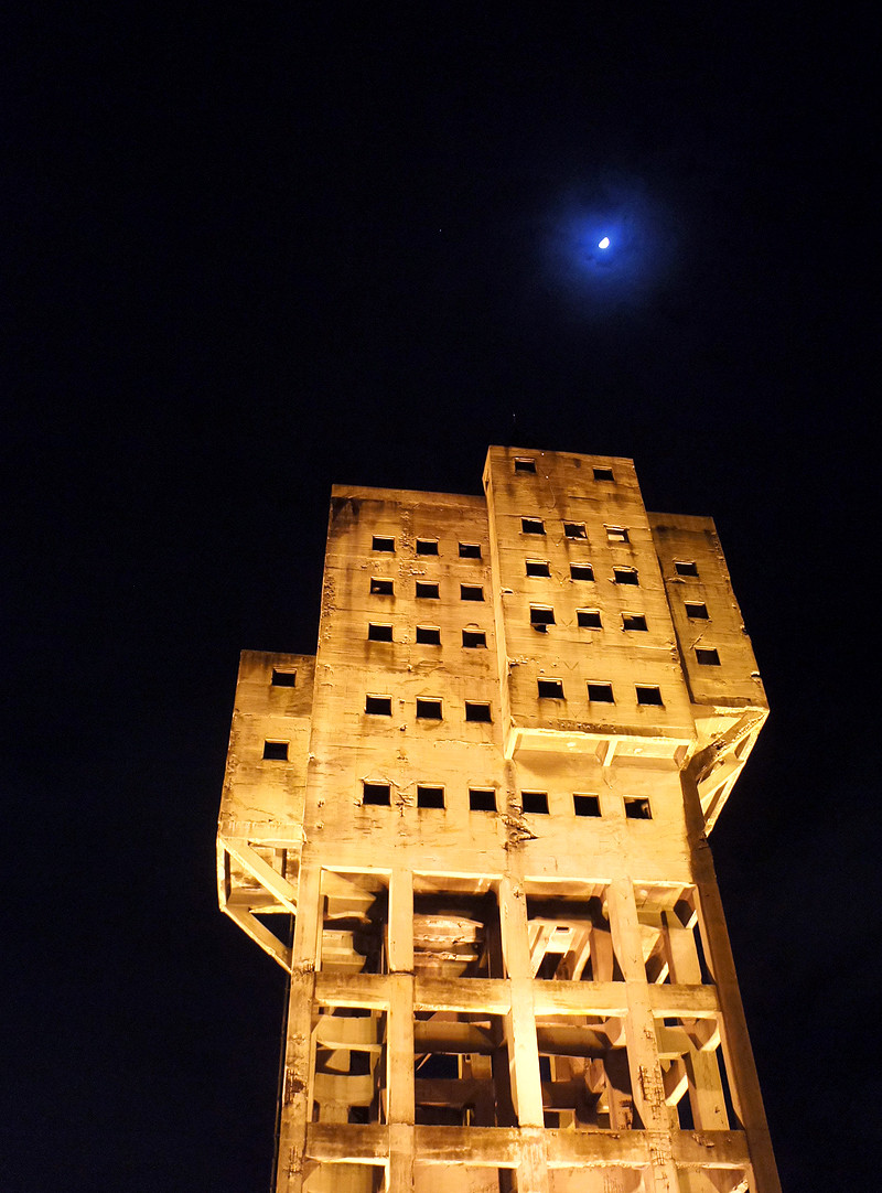 この地区が炭坑の町として栄えたシンボルとして少しでも長く残して行きたいものです。しかし素人が目視しても分かる程老朽化が進んでいます。コンクリートの剥落危険などがあり、登るどころか下までも行けない状況です。そもそも耐震強度はどうなっているんだろう、などと綺麗にライトアップされた立坑を見ながらいつも考えてしまいます。