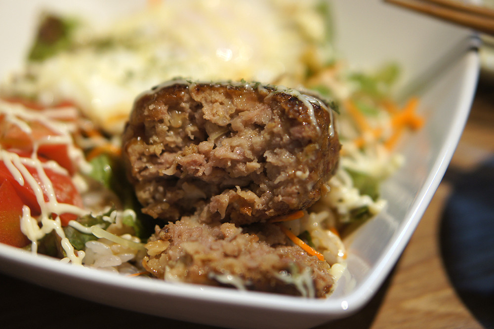 かえる食堂 蓮のロコモコ。ハンバーグがボリューミーで680円。お安いです。