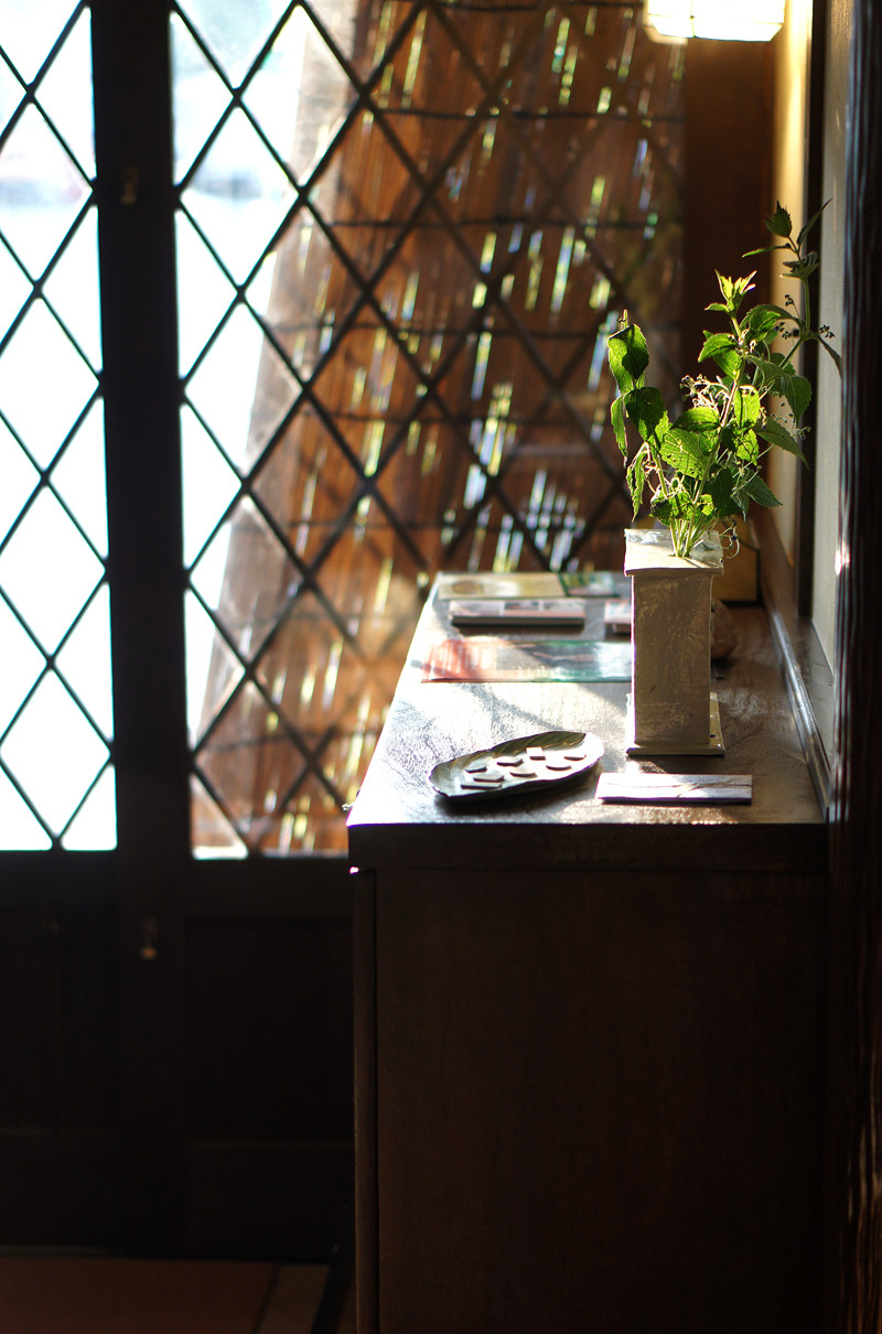 閉店間際。まだまだ残暑厳しい夕陽が差し込む玄関が逆に良い雰囲気。暑いと言えども朝夕は涼しくなりましたね。