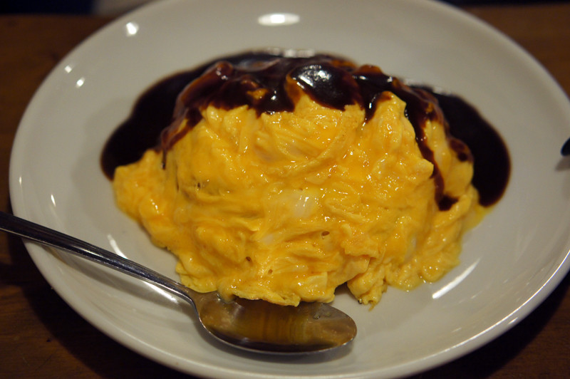 そして、なぜかオムライスも名物。単品は500円。セットについてくるミニオムライスはプラス200円。とろとろ玉子もそうやけど、このデミグラスソースが濃厚で本格的。何十年継ぎ足しながらつくってるんだろうって感じ。本当のところは聞いてないけど。