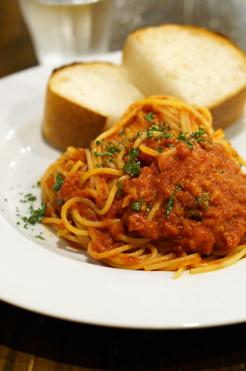 さて、今夜はよしみちゃんのトマトソースパスタとサラダとコーヒー。