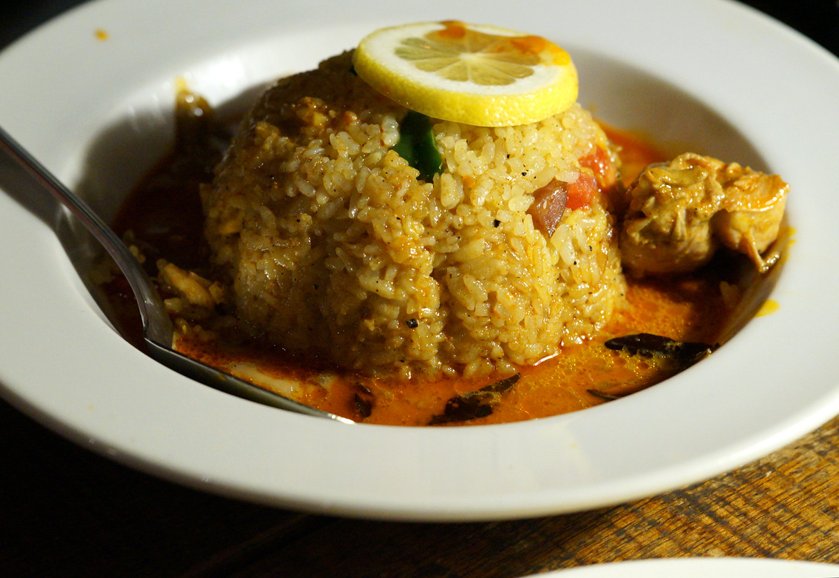 その約束の日が今夜でした。"リアルレッド"とはここでの辛さの5段階の一番の辛さのこと。僕はスリランカヌードルカリー、kazuさんはドライカリーをそれぞれ"リアルレッド"で注文。