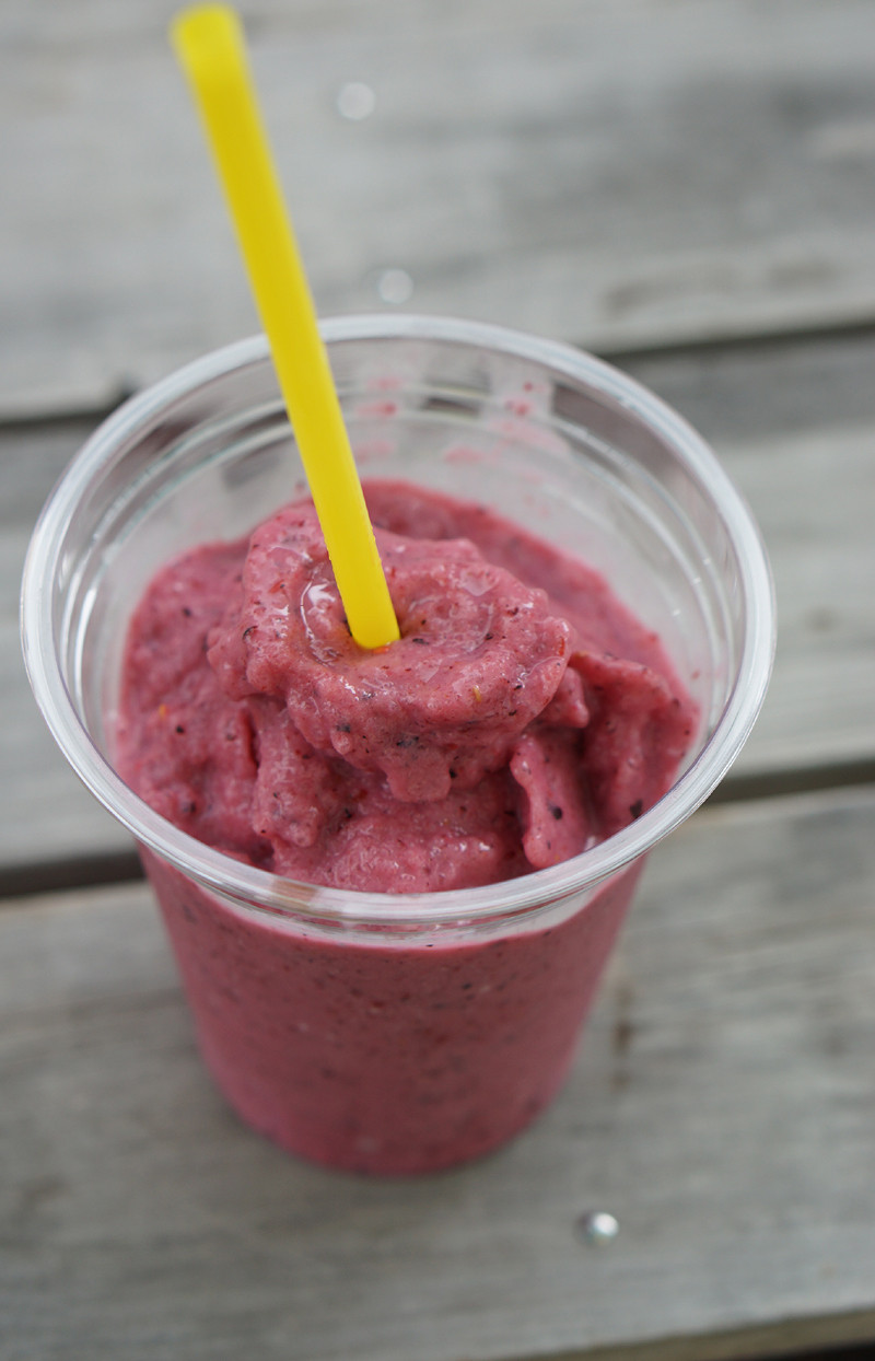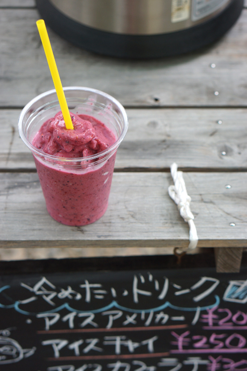 ベリーベリースムージー。350円。海の家にしては洒落た飲み物があるとよ。カフェやけんね。