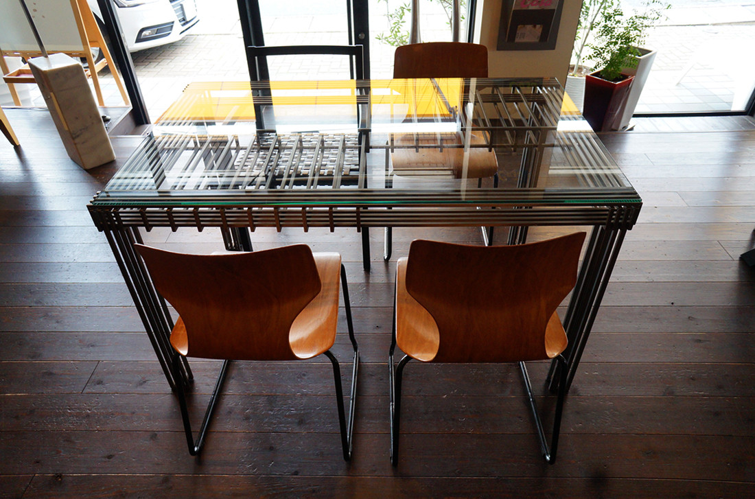 そう言えば、鉄職人というかプロダクトデザイナーのヤマウチマサヒロ氏が、ここ松崎イチカバチカ最後の一ヶ月間、作品を展示してます。こんなテーブルやあんな照明器具や時計などを最後にもう一度食事をしながらお楽しみください。