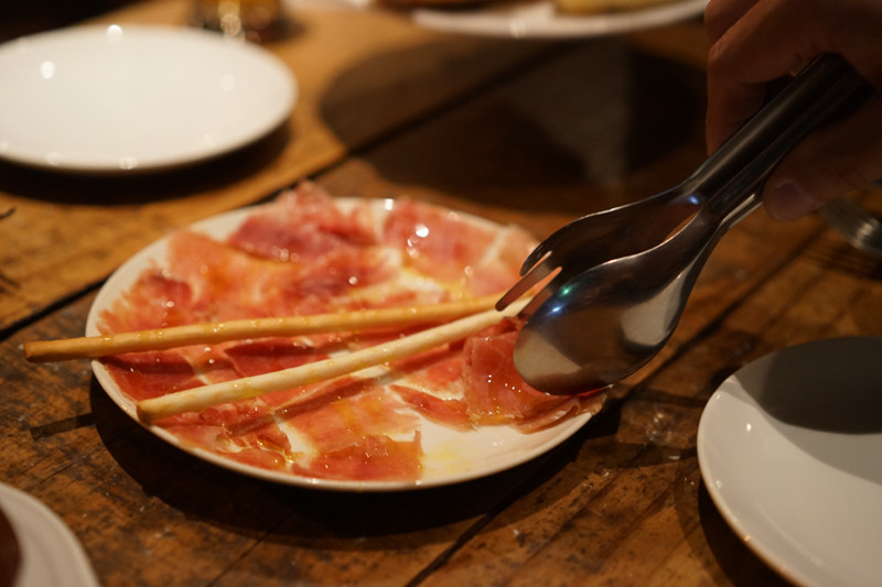 生ハム。皿に載ってるのは、割り箸じゃないよ。食べ物です。
