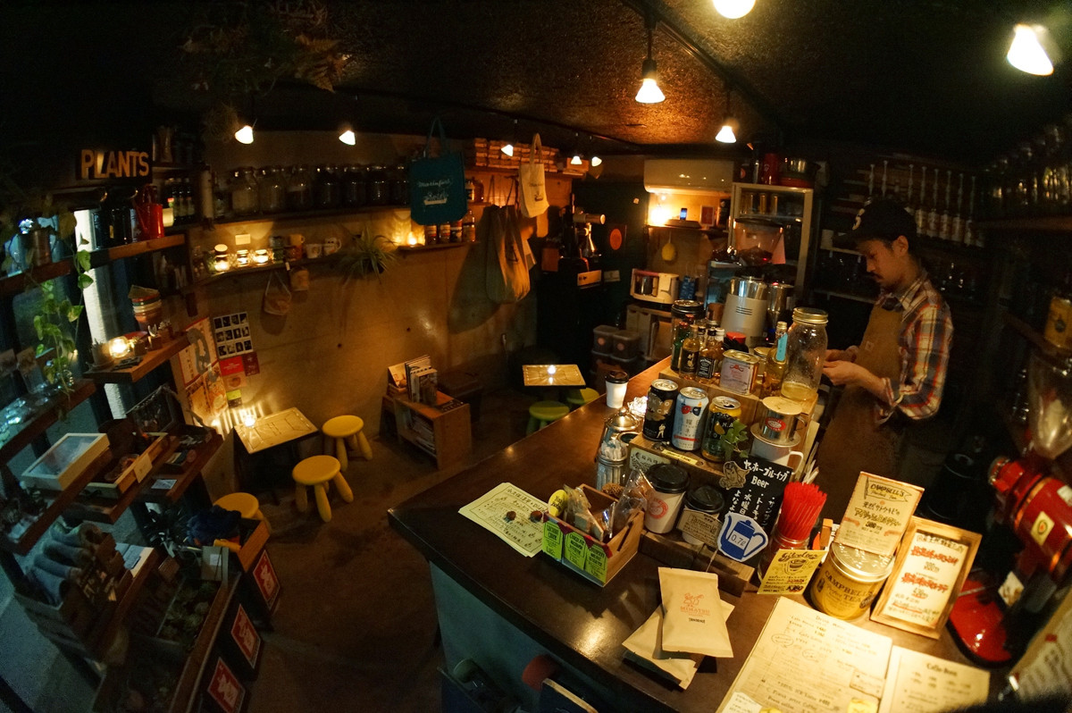先日「115Park」の隆太郎くんが「この前、初めて美松コーヒーに行きましたよ!!万太郎さんのブログ写真で見てただけだったから、もっと広いと思ってました!!」と。そうなんです、よく言われます。こんな感じで魚眼レンズで撮ると広く見えますが、実際はものすごく狭いです。そこが好きなんですけど。