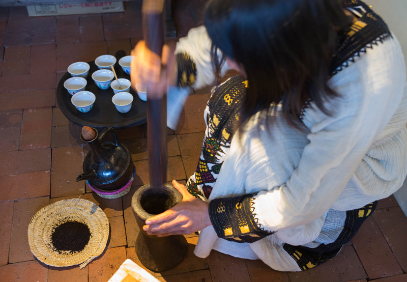 エチオピアの正月は9月11日。それにちなんで毎月11日に宮崎オーナーは自分の店で“エチオピア式コーヒーセレモニー”を開催しているのである。