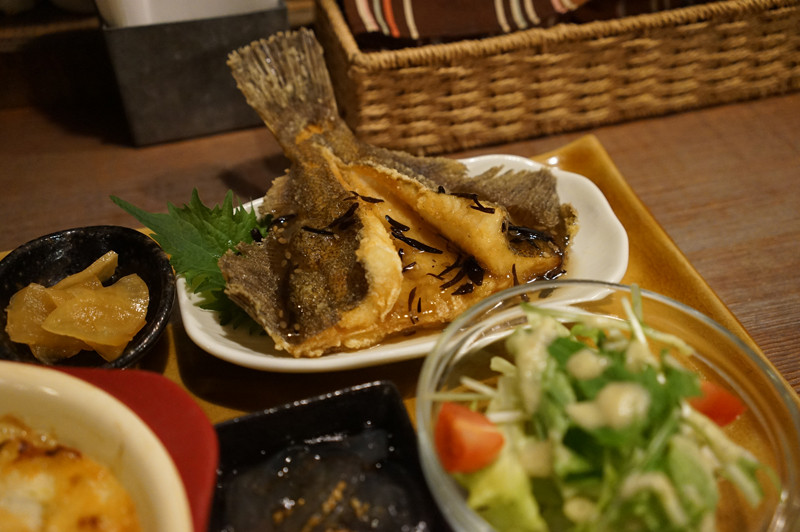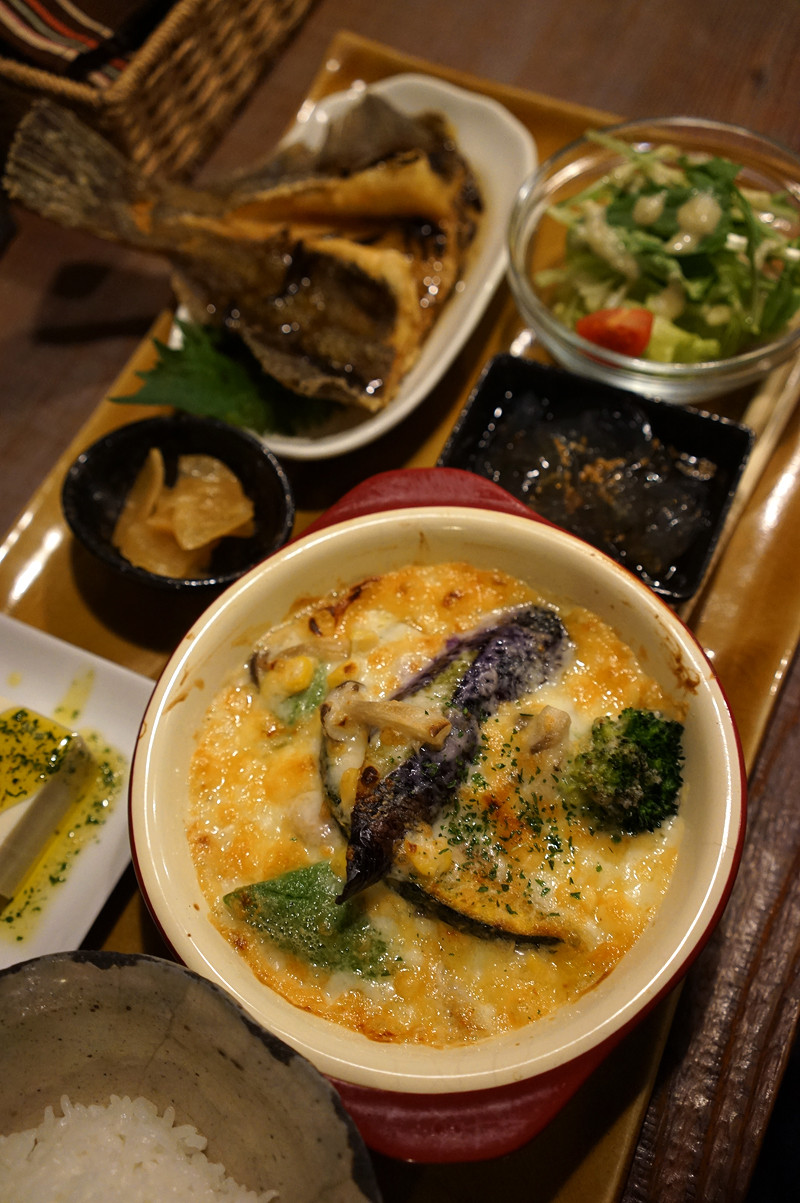 チキンと色々野菜のホワイトクリームチーズ焼き&カレイの唐揚げひじきあんかけ。