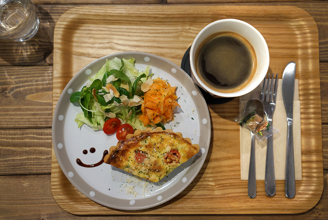 キッシュとアメリカーノのセット。「Amis」の珈琲は平尾「焙煎屋」さんが「Amis」用にブレンドした豆を使ってるんだけど、ここのアメリカーノ、美味しいね。