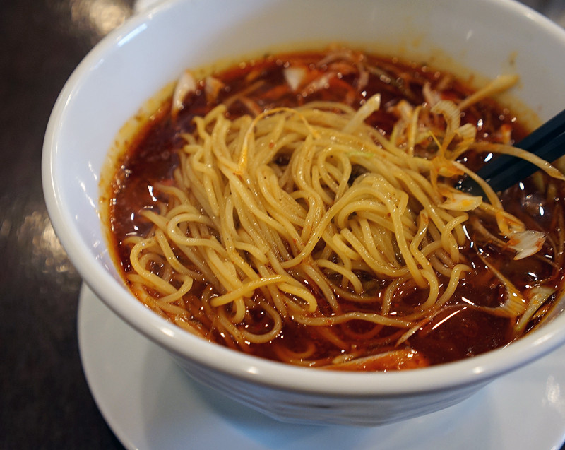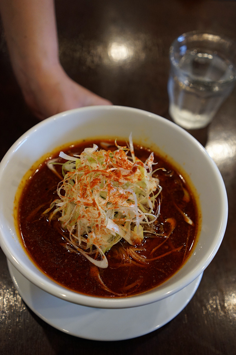そう言えば、昼も中華でした。銀行のすぐ前にある「杏仁荘」で“麻辣大陸担々麺”を。今日は暑かったから、あえて熱くて辛いのを選択。