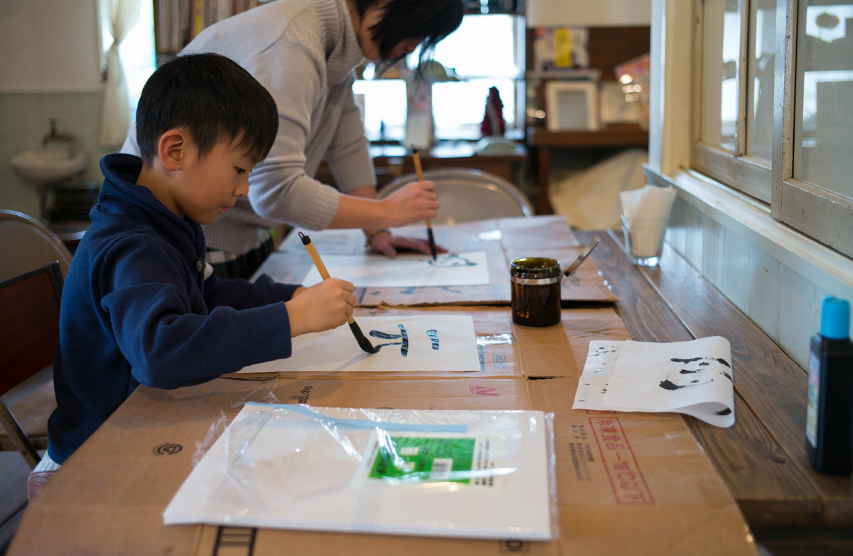 そして、書き初め。知り合いの親子さん。
