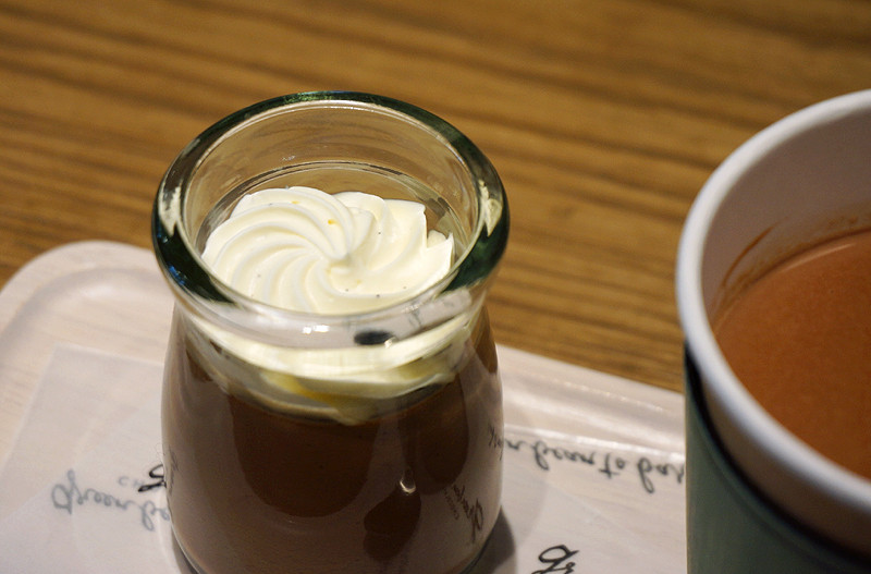 せっかくなんで、チョコっぽいホットドリンクとプリンを。