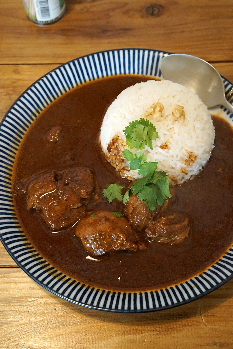 今日は新作というか試作中で少量だけつくってるマトンカレーがあるって聞いていたので、とりあえずそれをいただいた。(写真下)