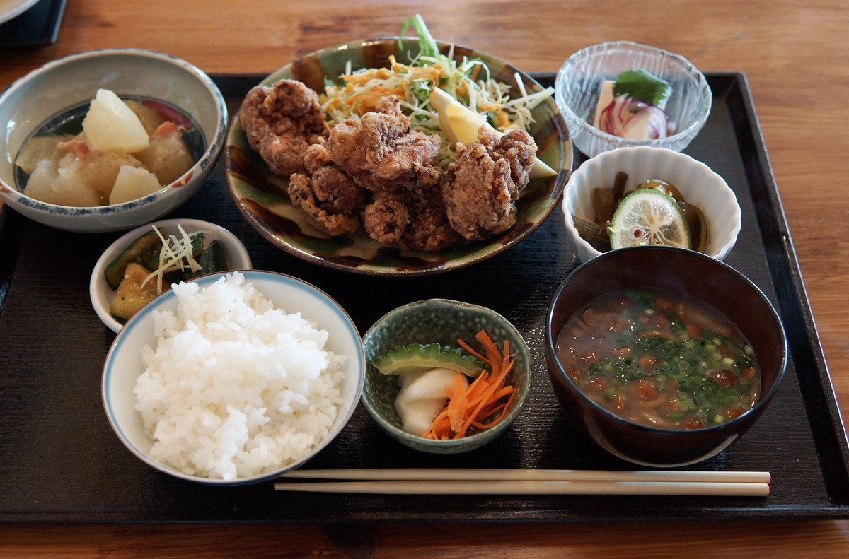 代わりにここでお手伝いをしているスタッフさんが今日の日替わり“唐揚げ定食”を作ってくれました。