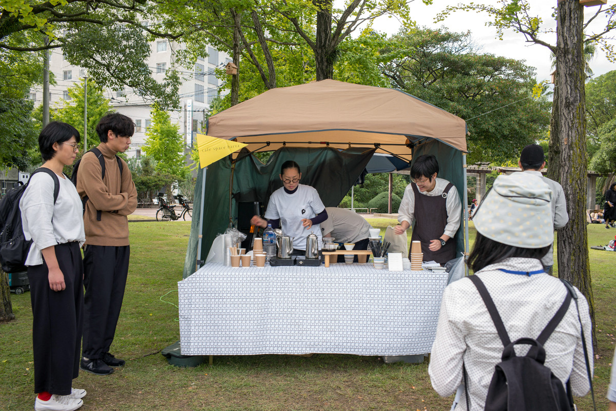 カフェ、レストランを中心に雑貨屋さんや八百屋さんがテントを張って出店。
