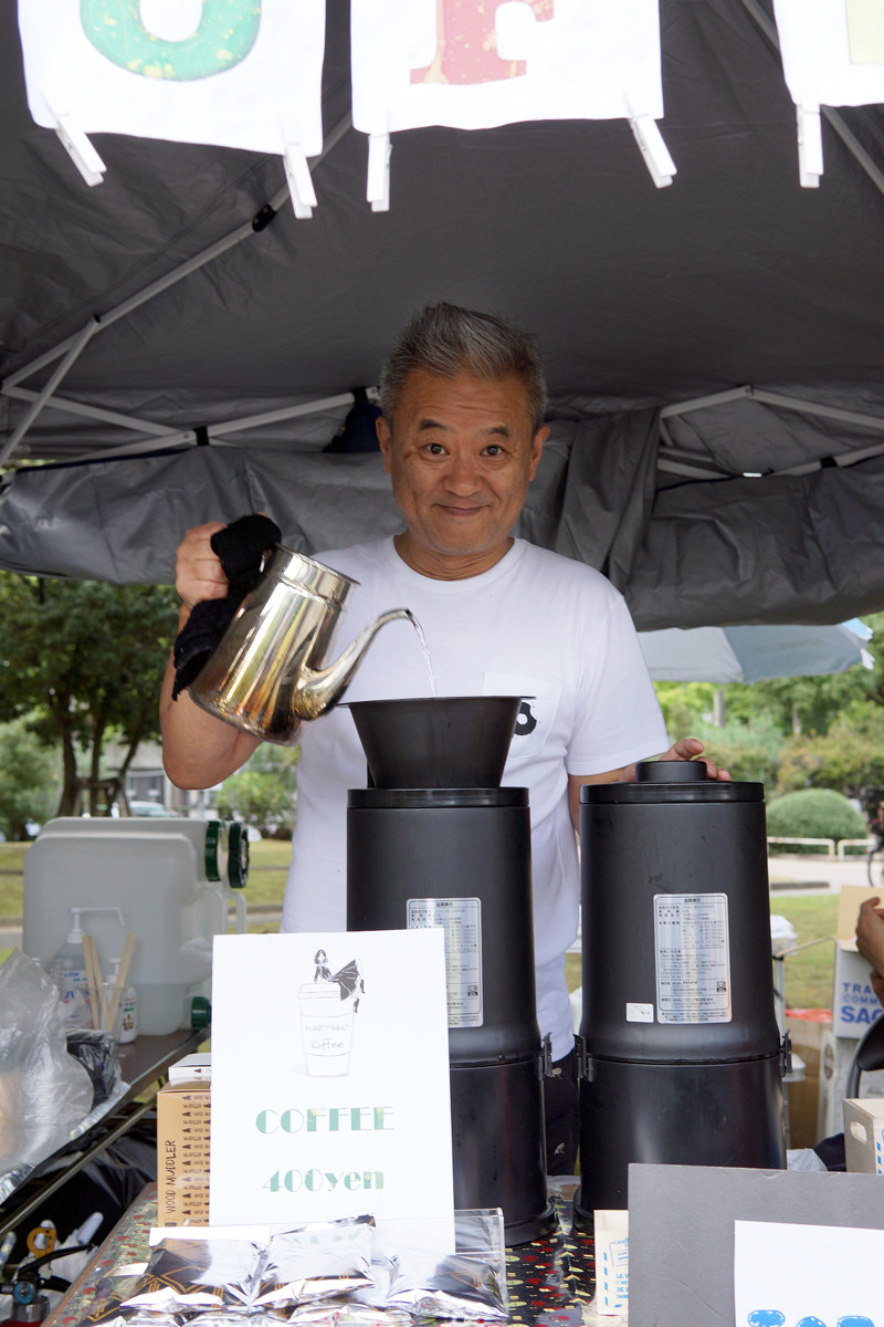 「ROASTERS CAFE MANO+MANO」(マノマノ)の増田オーナー。「ちゃんと真面目に珈琲淹れてるとこも撮っとってくださいね!」げなw