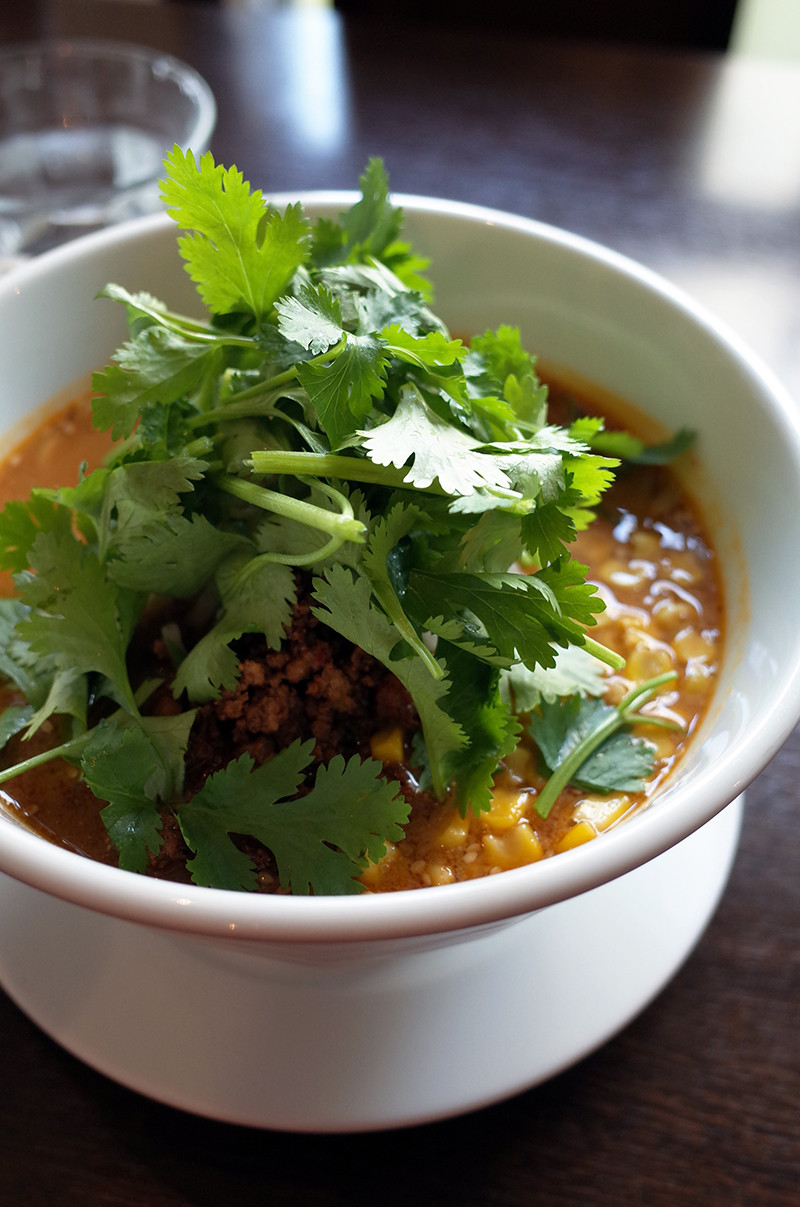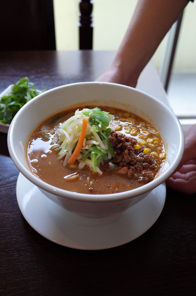 週替わりの味噌ラーメン、850円。ランチタイムはご飯またはデザートの杏仁豆腐がついてます。
