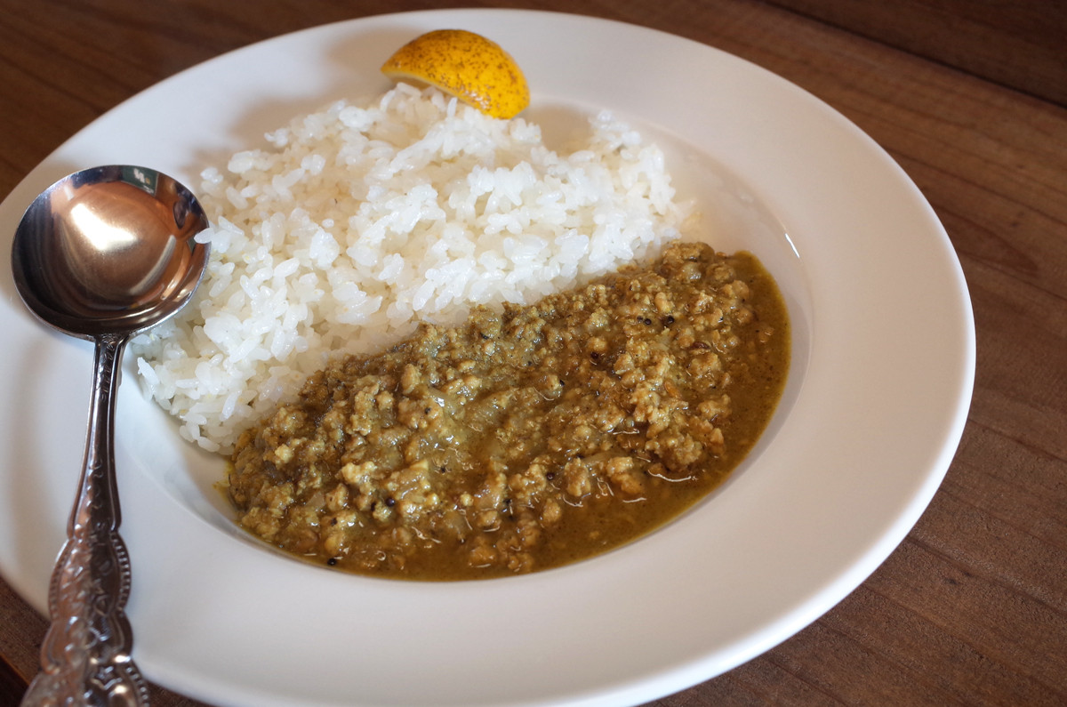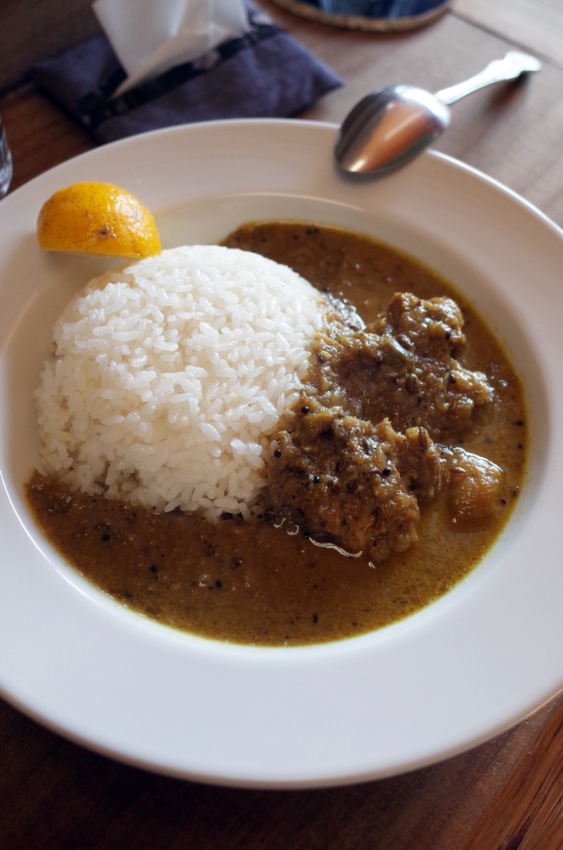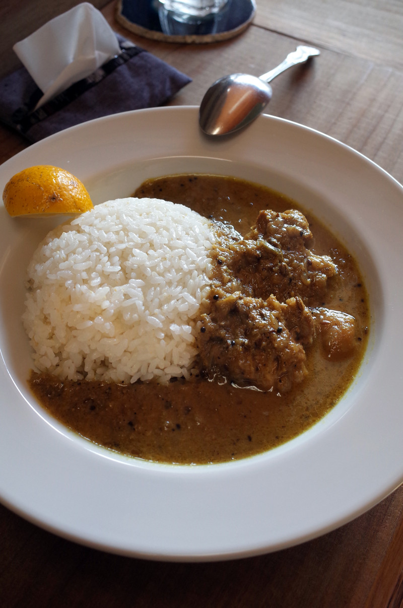 チキンカレー。添えられてるキズだらけの柚子が逆に素敵。