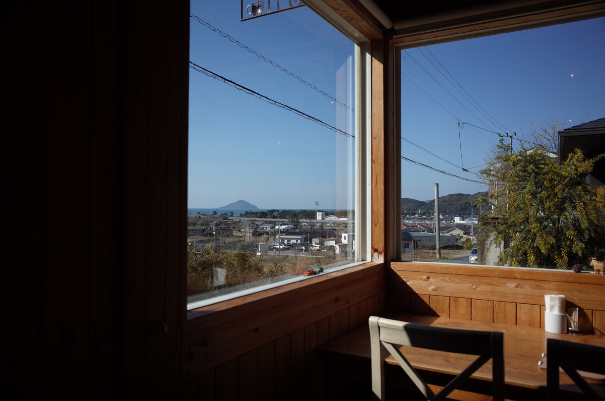 窓からは海に浮かぶ姫島