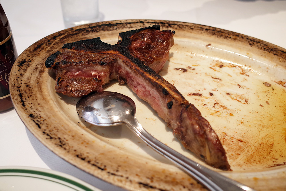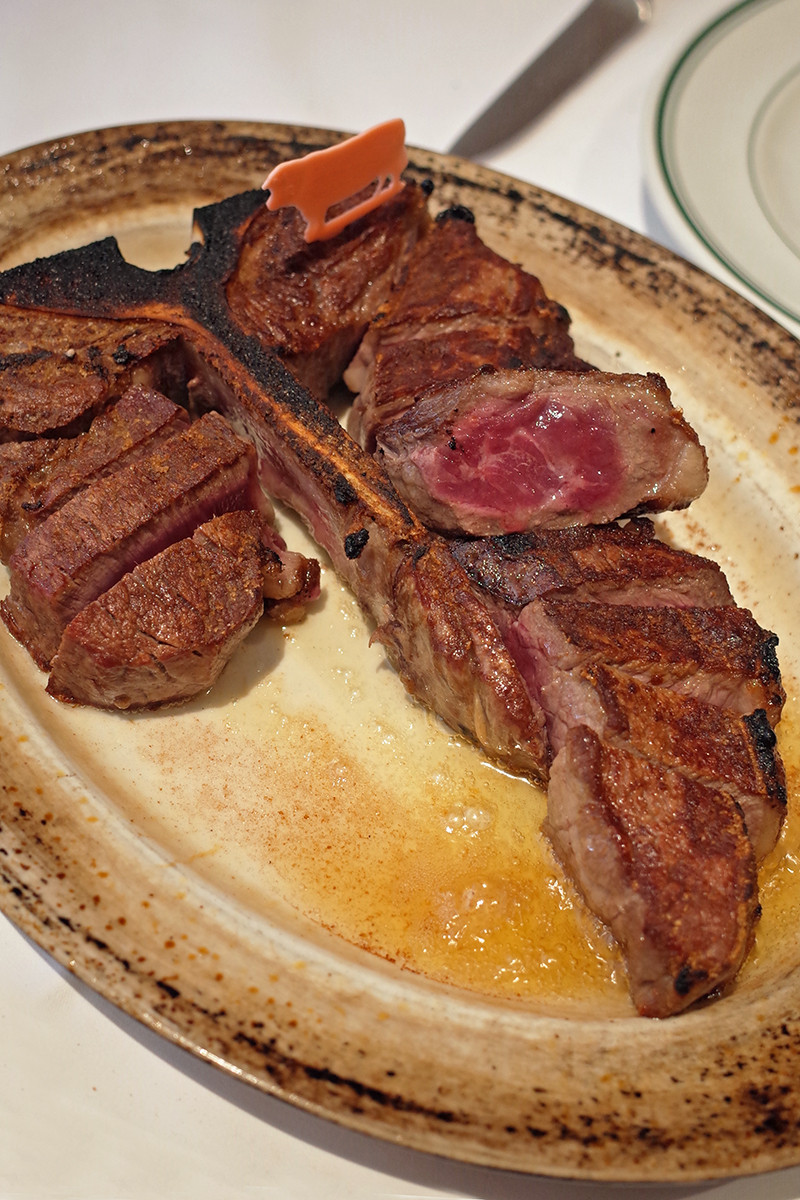 そして、Tボーンステーキが登場。800〜850g。肉部分でも500g以上。手前がヒレ肉で奥がサーロイン。(16,000円)