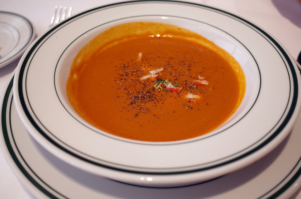 スープは、ロブスターのスープ。これも1人前(1,700円)を2人でシェア。 写真は、1/2にしたもの。