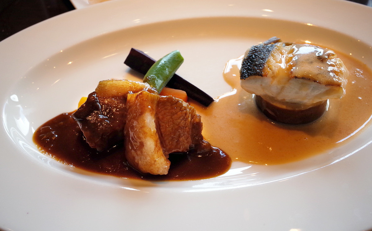 そして、メインの肉料理と魚料理。イサキのソテーとスペアリブのカレーソース