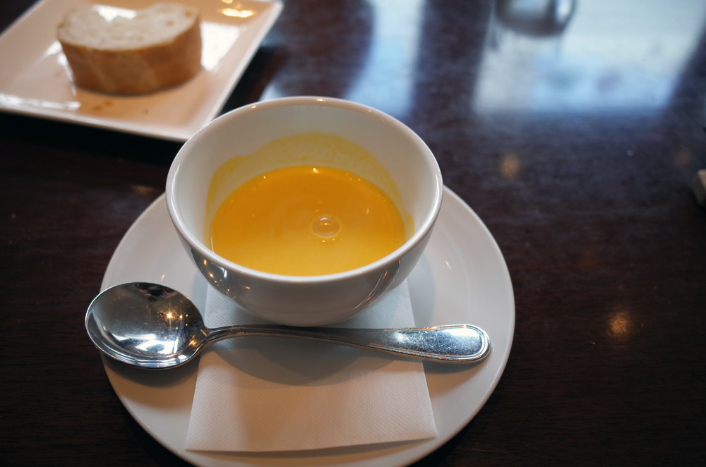 ミニランチコース、1,620円をいただく。前菜とサラダ、スープ、メイン、デザート、ドリンクがついている。
