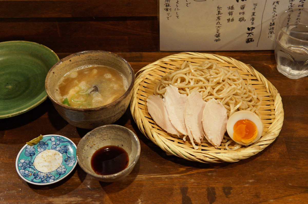 今日は、ライ麦の入ったつけそばをいただく。店主に勧められるまま、スープで食べる前に、塩とかえしで半分以上の麺を食べてしまう。