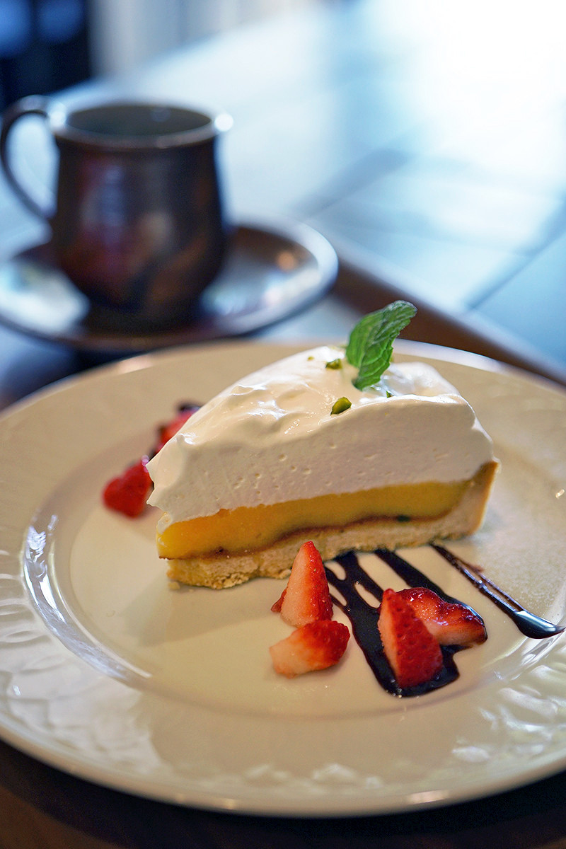 ラーメン後に「Cafe檸檬」でレモンタルト。人気の看板スイーツ。これ、うまいのよ。半分食べようと思ったけど、美味かったので全部食べた。