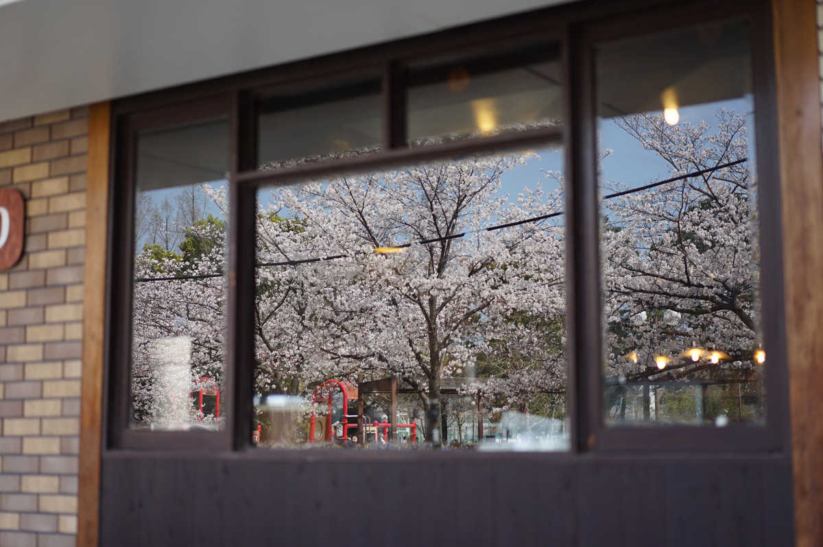 お昼は「公園通り」で日替わりランチ。目の前の山王公園では花見真っ盛りですね〜。
