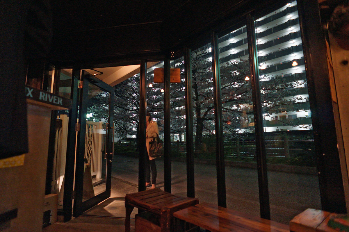 からの「Banx River」にも。店前の川岸桜、満開です。