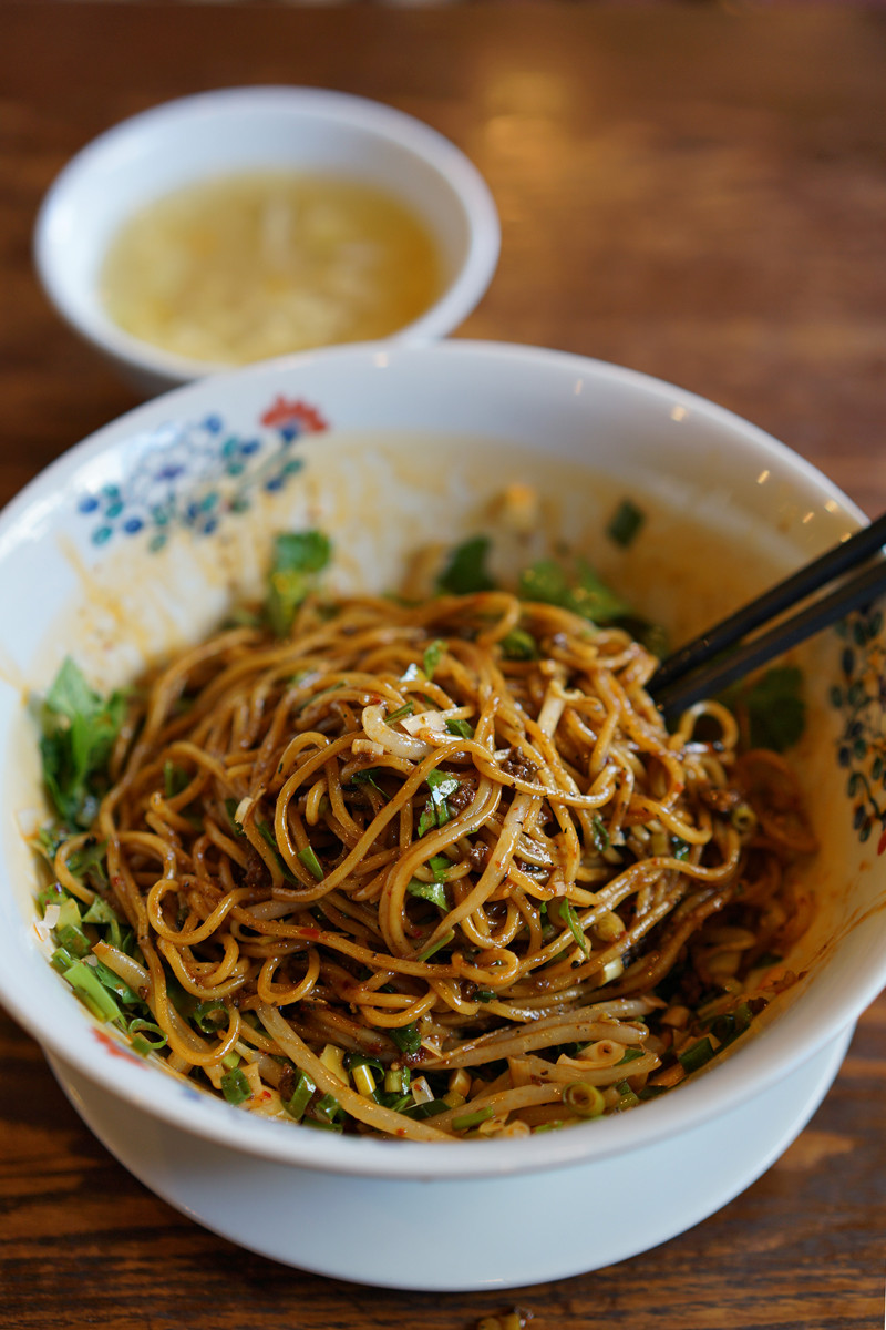 お昼は「杏仁荘」で汁無し担担麺。麺でご飯がイケる味だけど我慢した。850円でご飯またはデザートが選べます。
