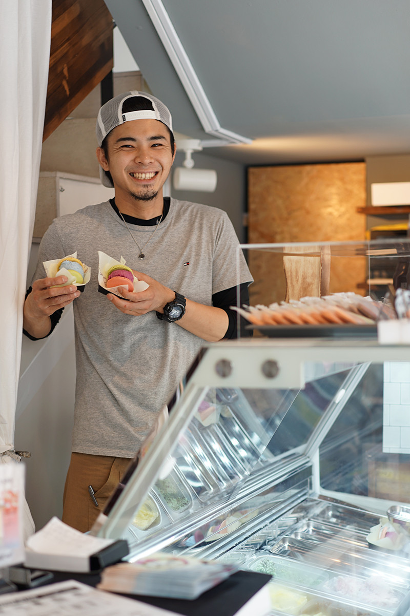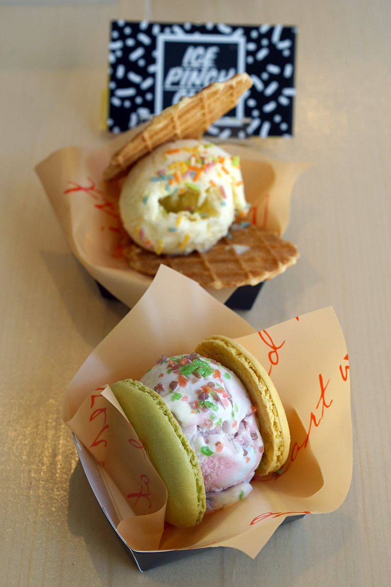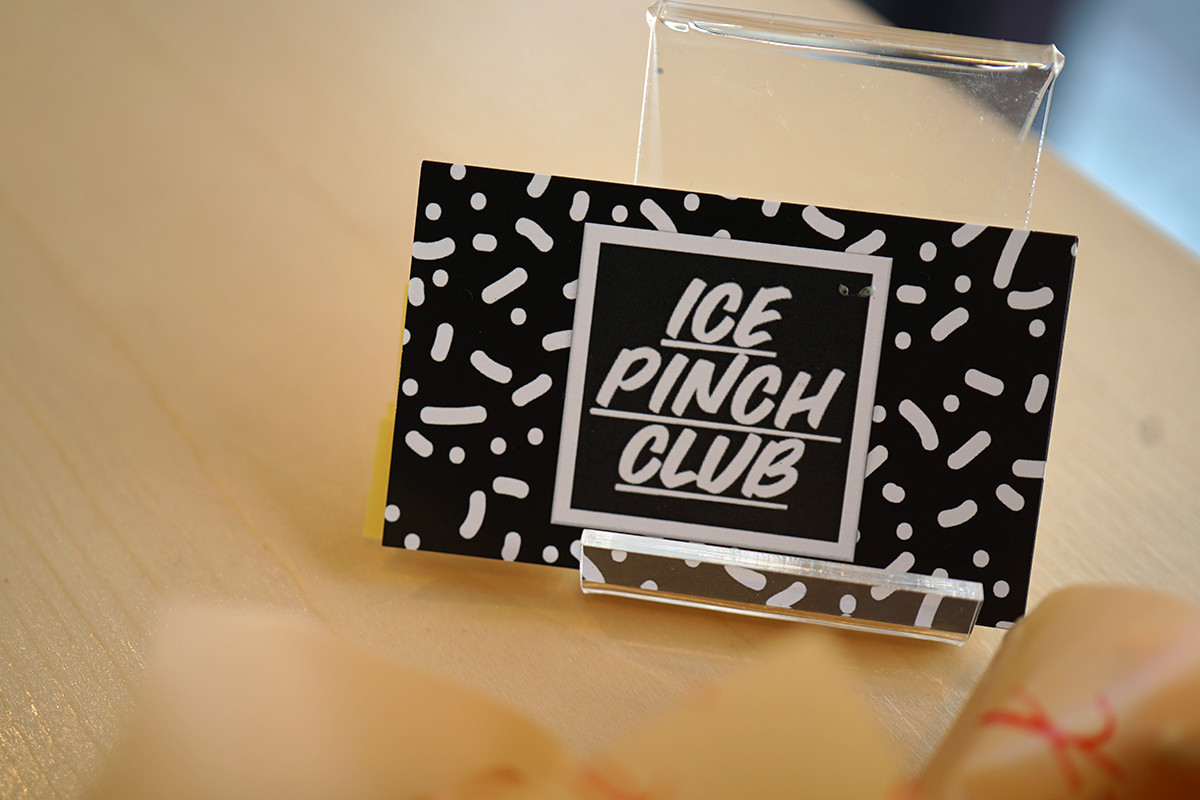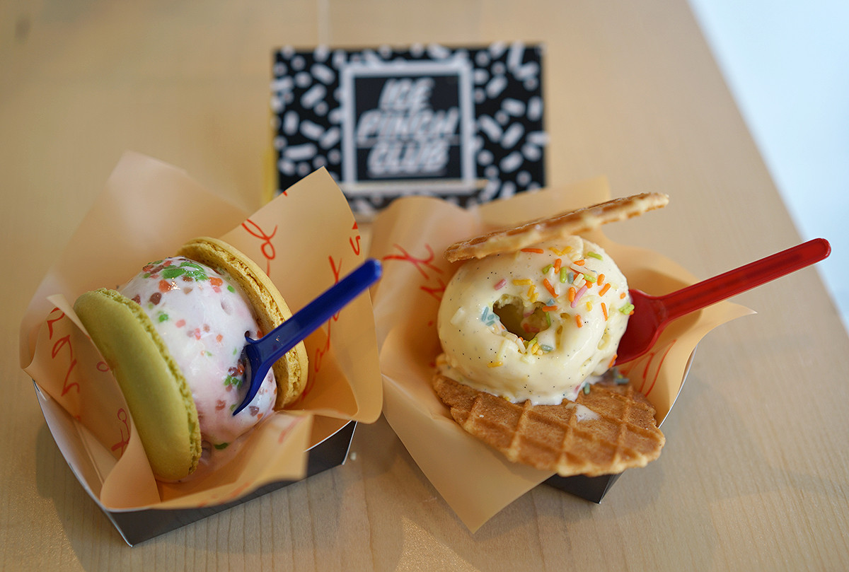「ICE PINCH CLUB」というアイスサンドの店。アイスをマカロン、ワッフル、パンケーキなどで挟んで食べるというもの。