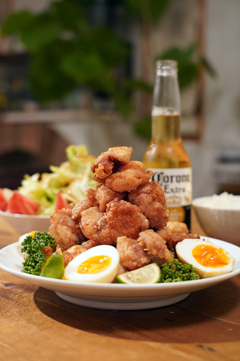 夜は珍しくというか、今年初めての自宅ご飯。最近食べ過ぎなので夜は簡単に済ませようと早めに帰宅してたら、三人娘から「ママおらんけん、晩ご飯食べる?」との誘い。なら少し。ということで長女作のザ・唐揚げ。