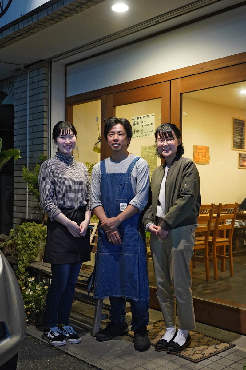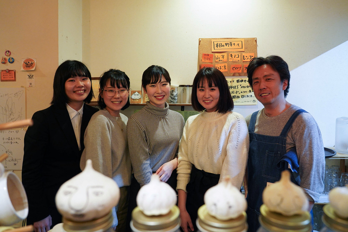卒業バイトちゃん二人を囲んで新人ちゃんとオカノさん。