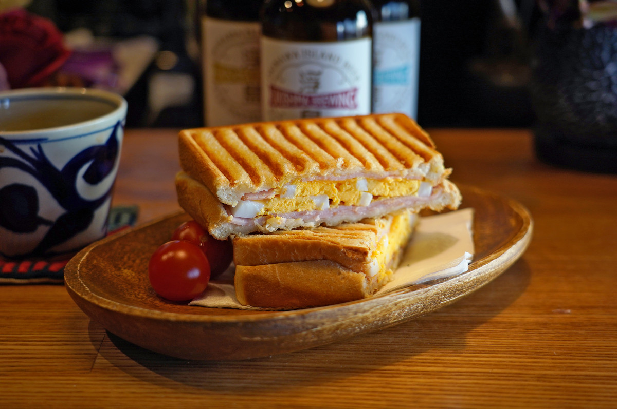 ホットサンドは、茹で玉子とハム。玉子に目がないので注文してしまった。