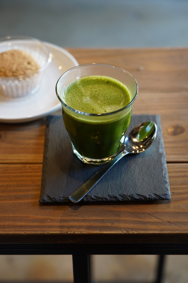 からの日課カフェ【Banx River】へ。おはぎをお土産に。そして、抹茶アメリカーノを注文してみた。珈琲飲み過ぎた時は、これ、好きかも。