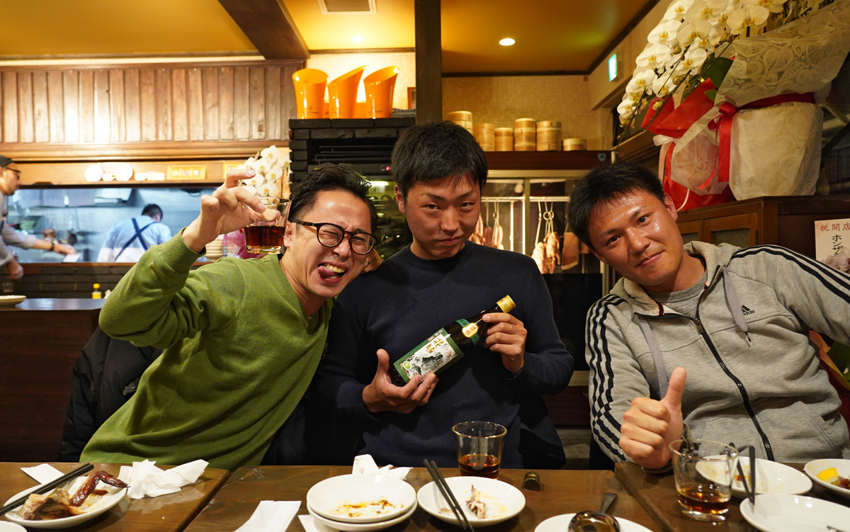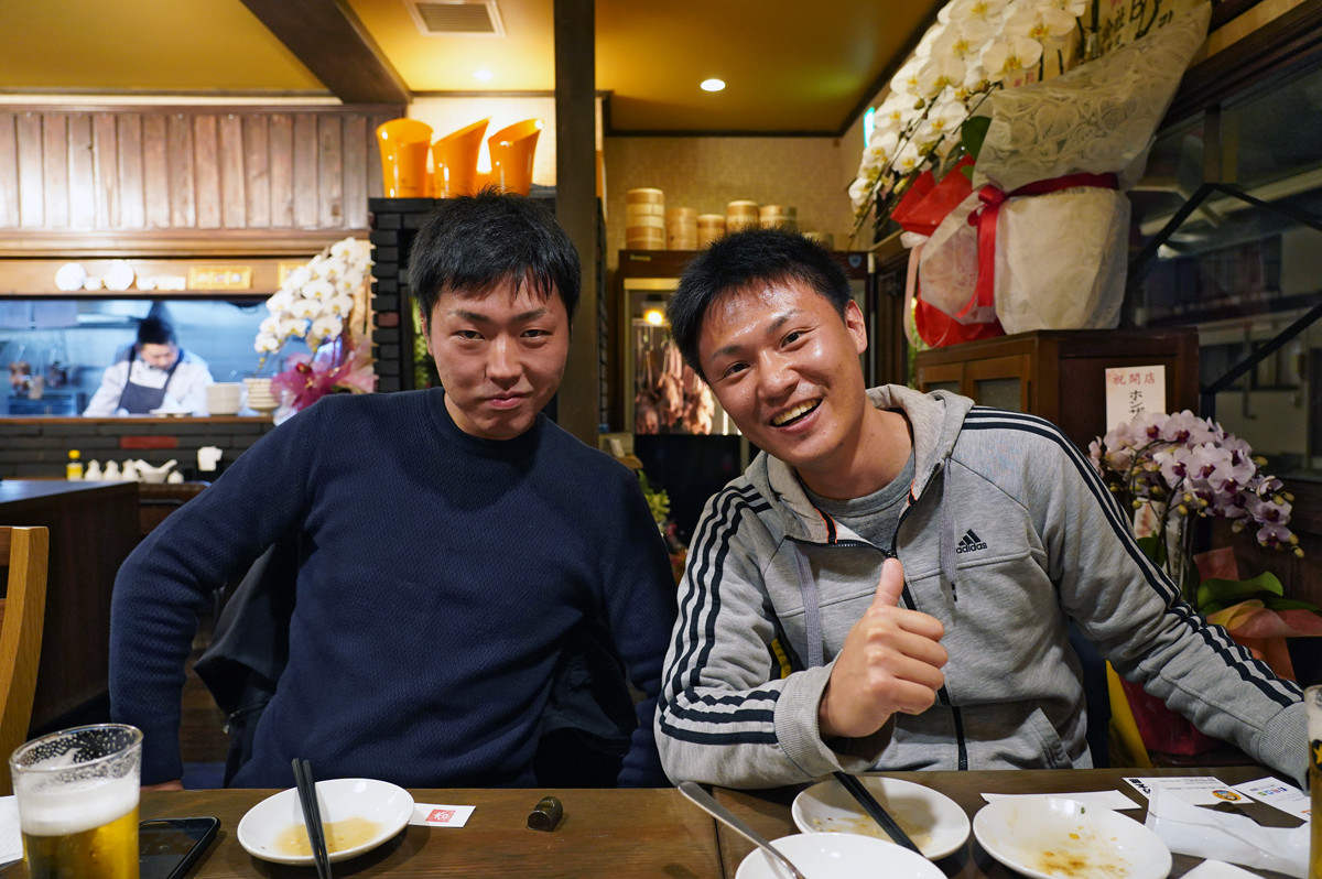 そして、今夜はキッチンカーでカレー販売をするために、愛知県から出発して日本縦断の旅の途中に福岡にやってきた【カレーコミニュケーション】の二人と【杏仁坊主】で食事。