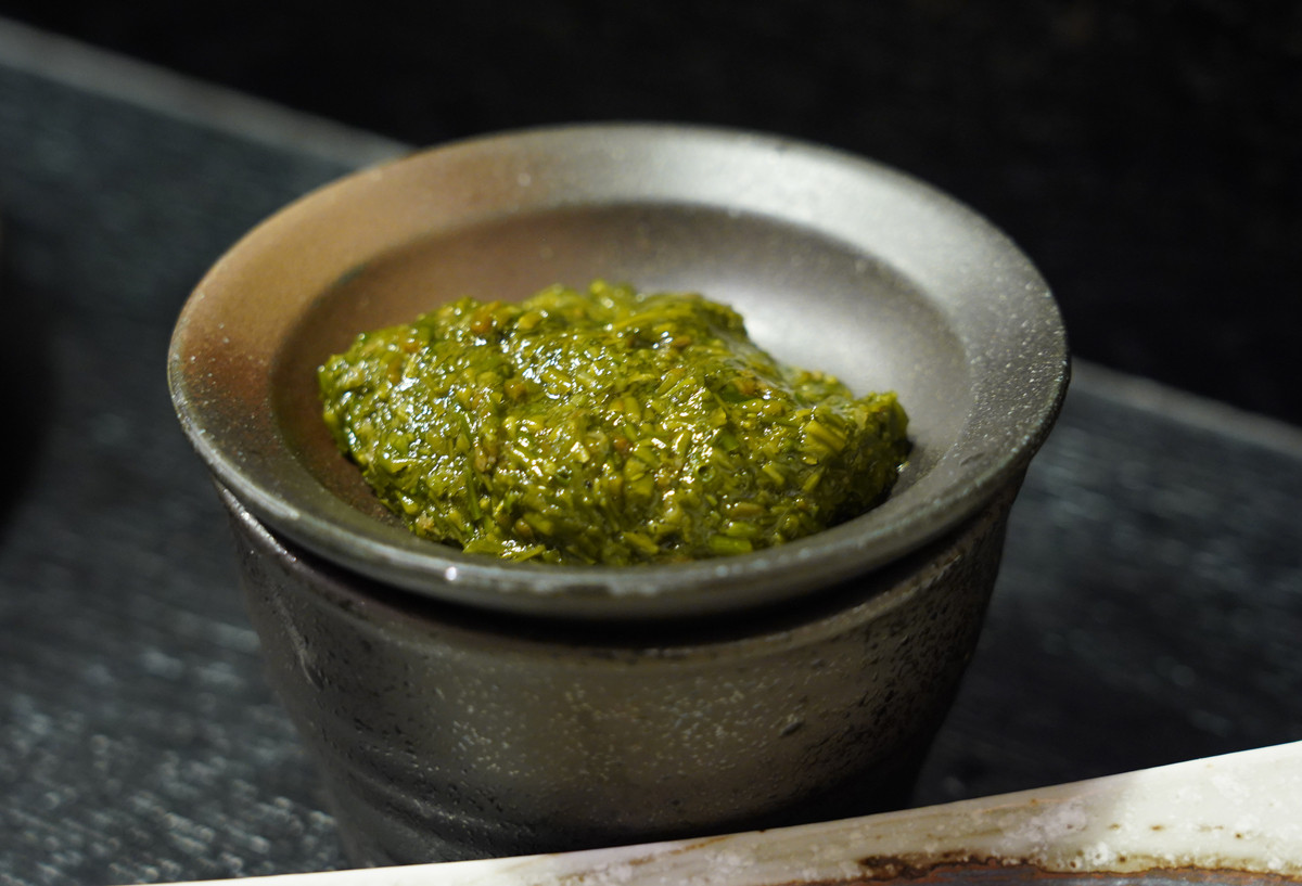 蕎麦のつゆに入れるアカモクもあり。大将のおすすめ。