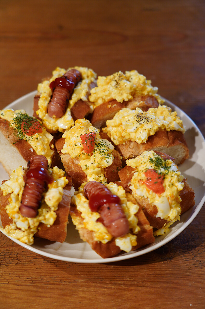 夜自宅に帰ったら長女(@rika__gohan)がインスタグラム用に作った朝ご飯のようなパンがあったので、晩ご飯として食べた。