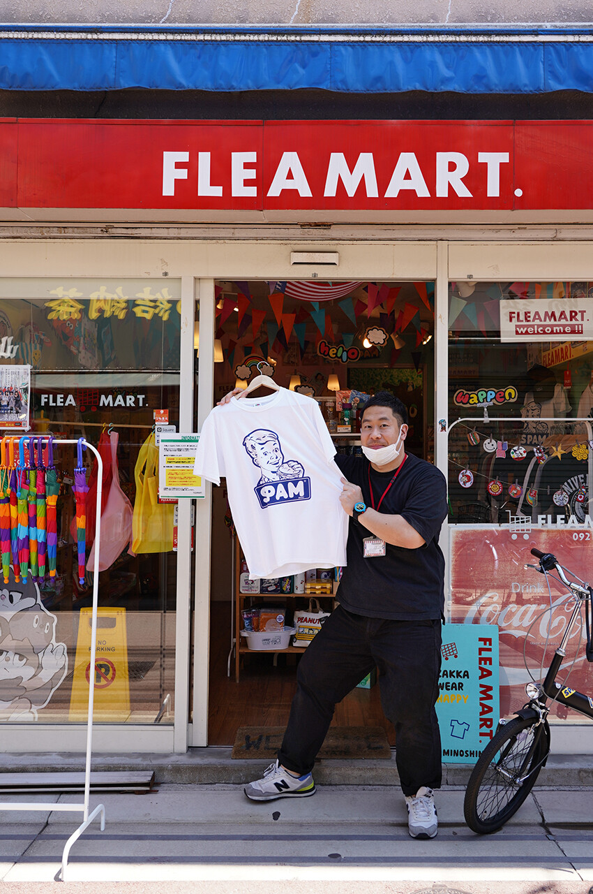 美野島商店街のアメリカンポップな雑貨屋さん、【FLEAMART.】で夏に向けて白いTシャツ購入。