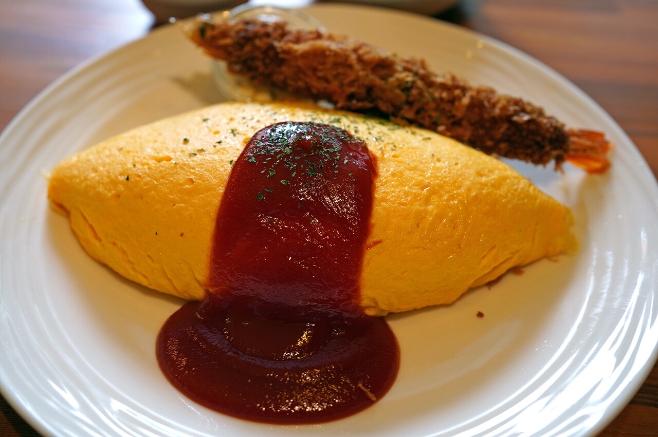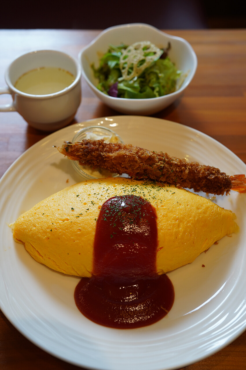 オムライスってご飯は何グラムくらいあるかいな?って聞いたら180gくらいってことだったので、「では、大盛りでお願いします」と注文。