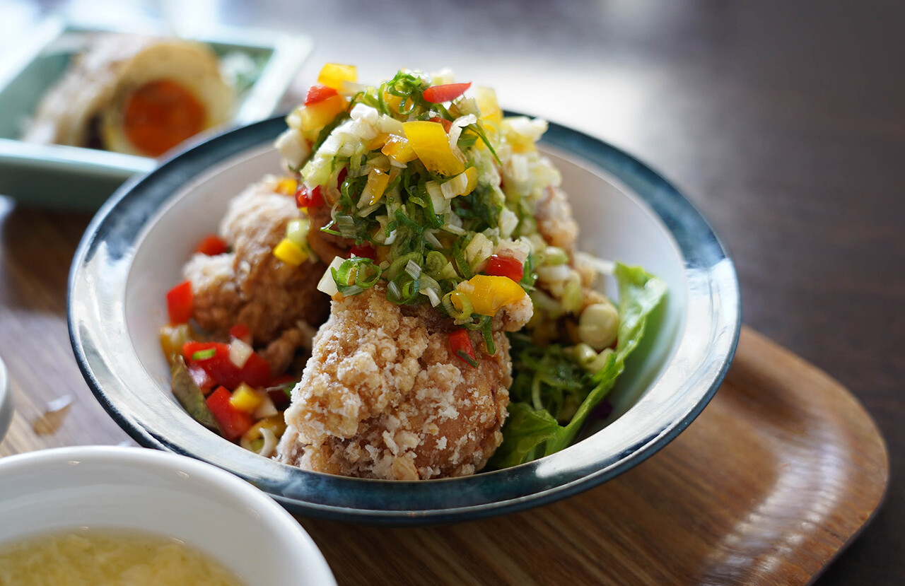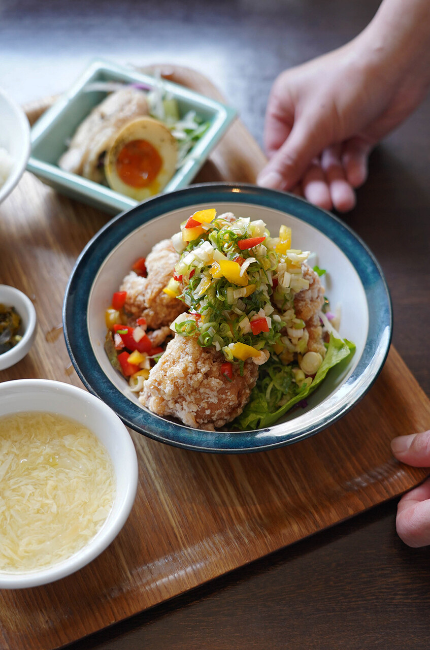油林鶏は定番メニューだけど、むっちゃジューシーで熱々でしっかり味がしみ込んでてご飯がイケる。