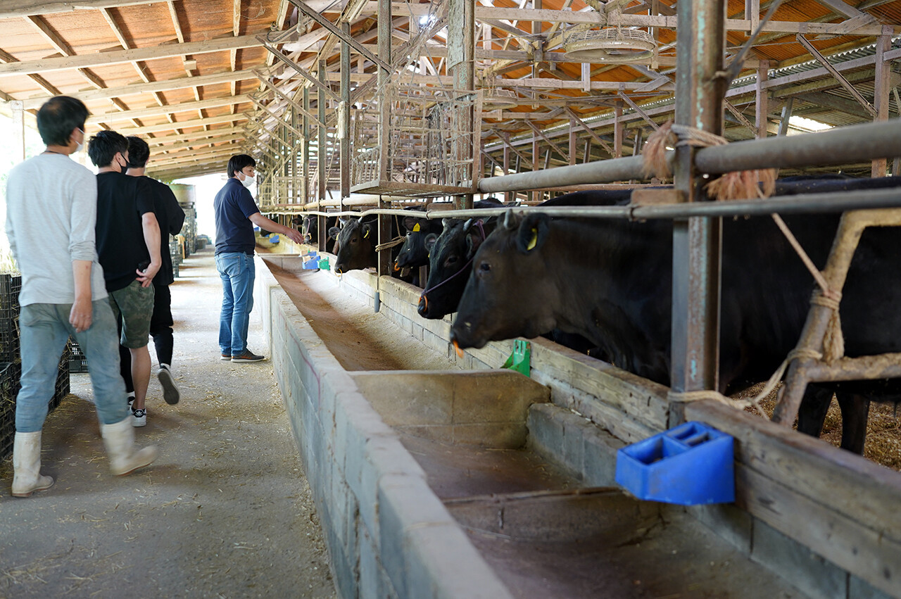 さらには【あかね荘】の直営の牧場も見学。飲食業のみならず、筑穂牛というブランドを守る事業にも乗り出しているそうだ。