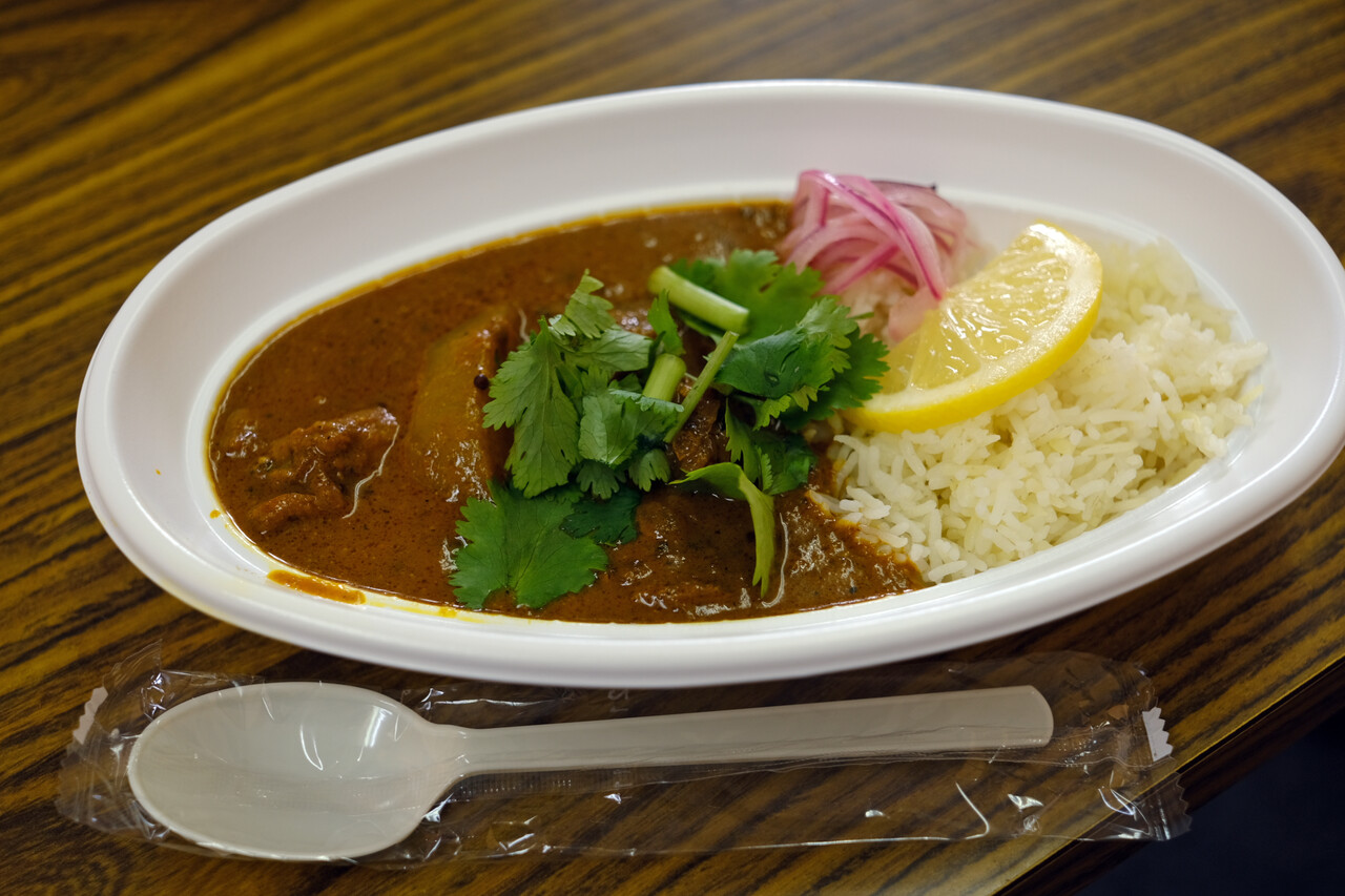 お昼は美野島商店街で『ミノシマルシェ』でした。毎度のお店、毎度の客が集まって楽しい時間。寒かったので休憩所で暖まりながらおしゃべり。カレーはたけるくんの【カレバカカレー】をいただき。それに商店街のランチビュッフェも。ゴッちゃんでした。