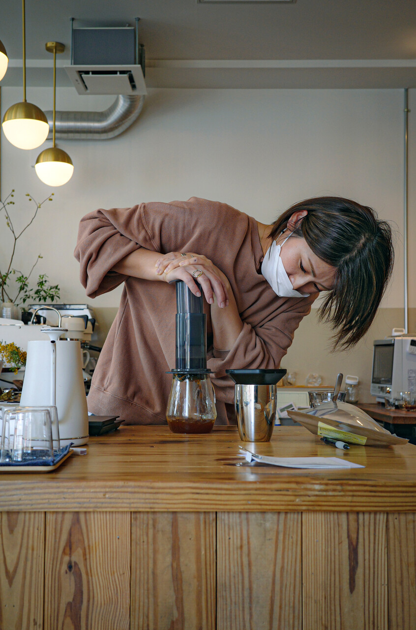 本日のコーヒー350円の他に豆や抽出方法を選んでのコーヒーも提供してるんだけど、Tomokoさんが エアロプレスを試飲してました。